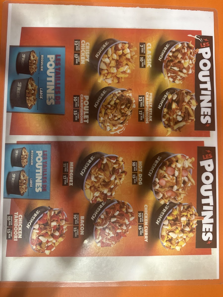 - Poutines: Traditional and creative poutine dishes are available, featuring fries topped with cheese curds and brown sauce. Variations include classic poutine, as well as versions topped with ingredients such as tandoori chicken, hot dog sausage, beef bacon, and curry chicken.